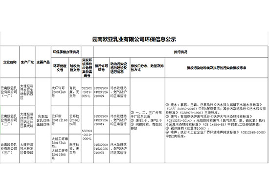 云南歐亞乳業(yè)有限公司(二廠)信息公開